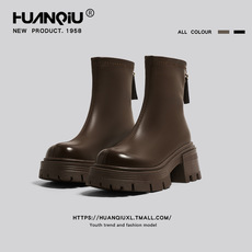 厚底马丁靴女2026新款春秋季棕色复古增高时尚百搭皮面短靴子